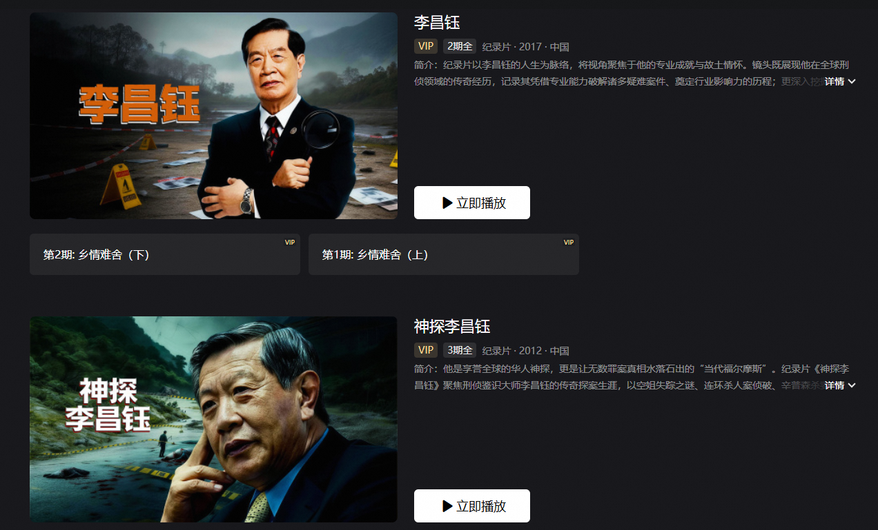 如今,《李昌钰》与《神探李昌钰》正在优酷热播,引发广泛关注。无论你是刑侦迷,还是渴望了解这位华人传奇背后故事的人,这两部纪录片都将带给你前所未有的观看体验。